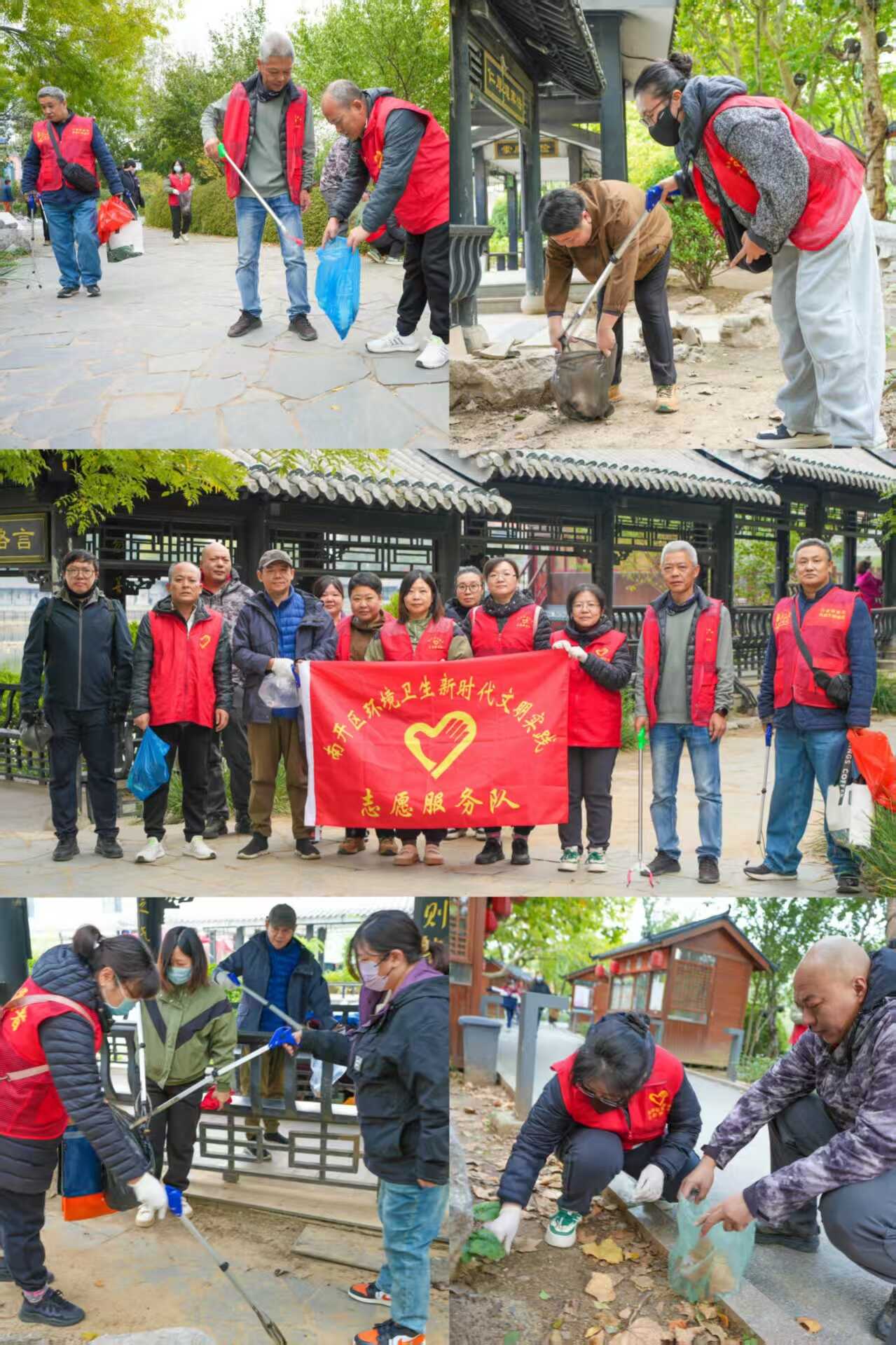 10月22日下午,南开区环境卫生新时代文明实践志愿服务队在长虹生态园开展环境卫生清整活动。志愿者们身着红色马甲,手持扫帚、夹子、垃圾袋等清洁工具,重点对园区绿化带、景观长廊、湖岸沿线等关键区域进行地毯式清理,细致清理烟头、纸屑等杂物。