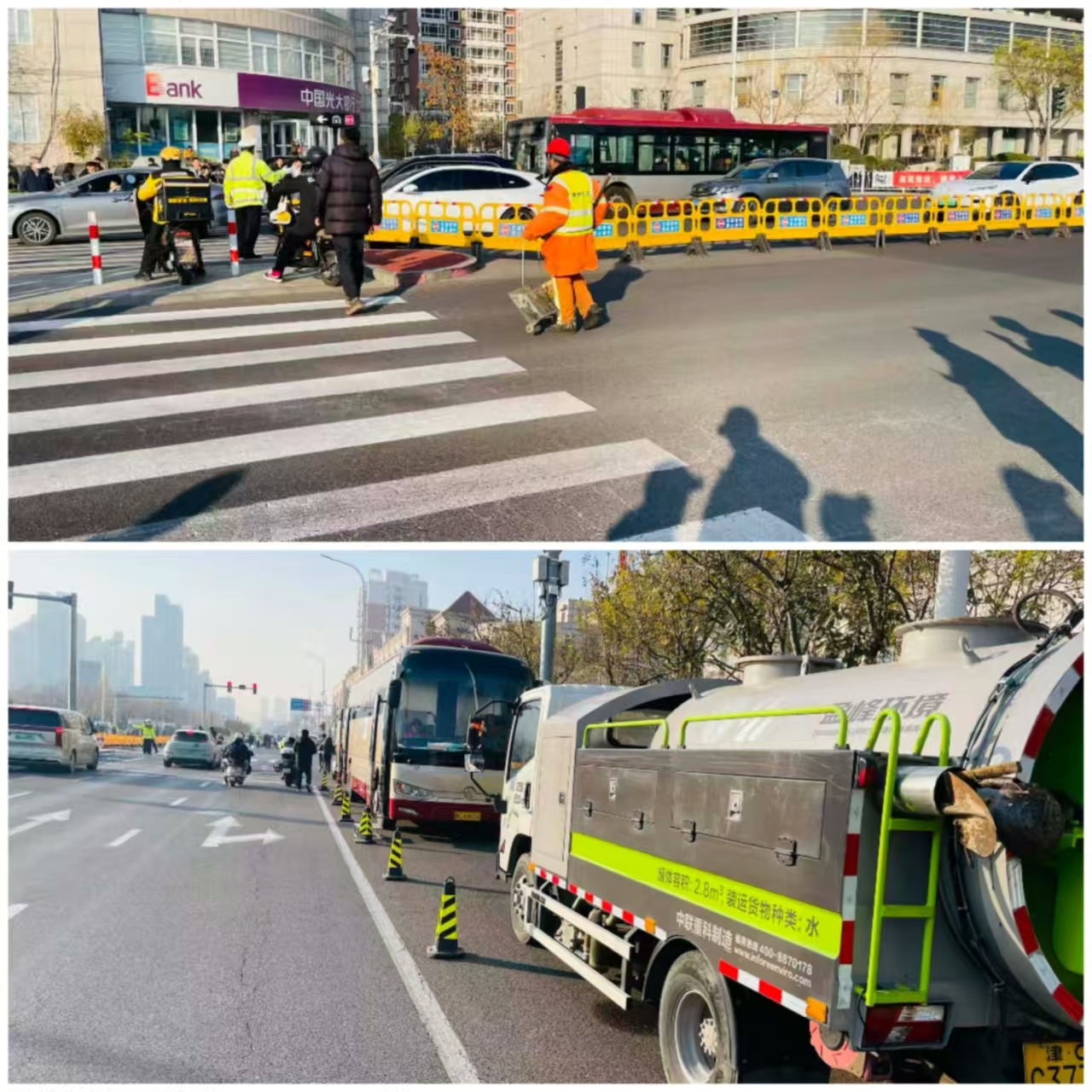 “人机结合”作业:机械化作业车辆利用人流间隙,对主干道进行快速冲洗和吸扫;人工保洁则专注于人行道、绿化带等机械无法触及的角落,实现无死角覆盖。
