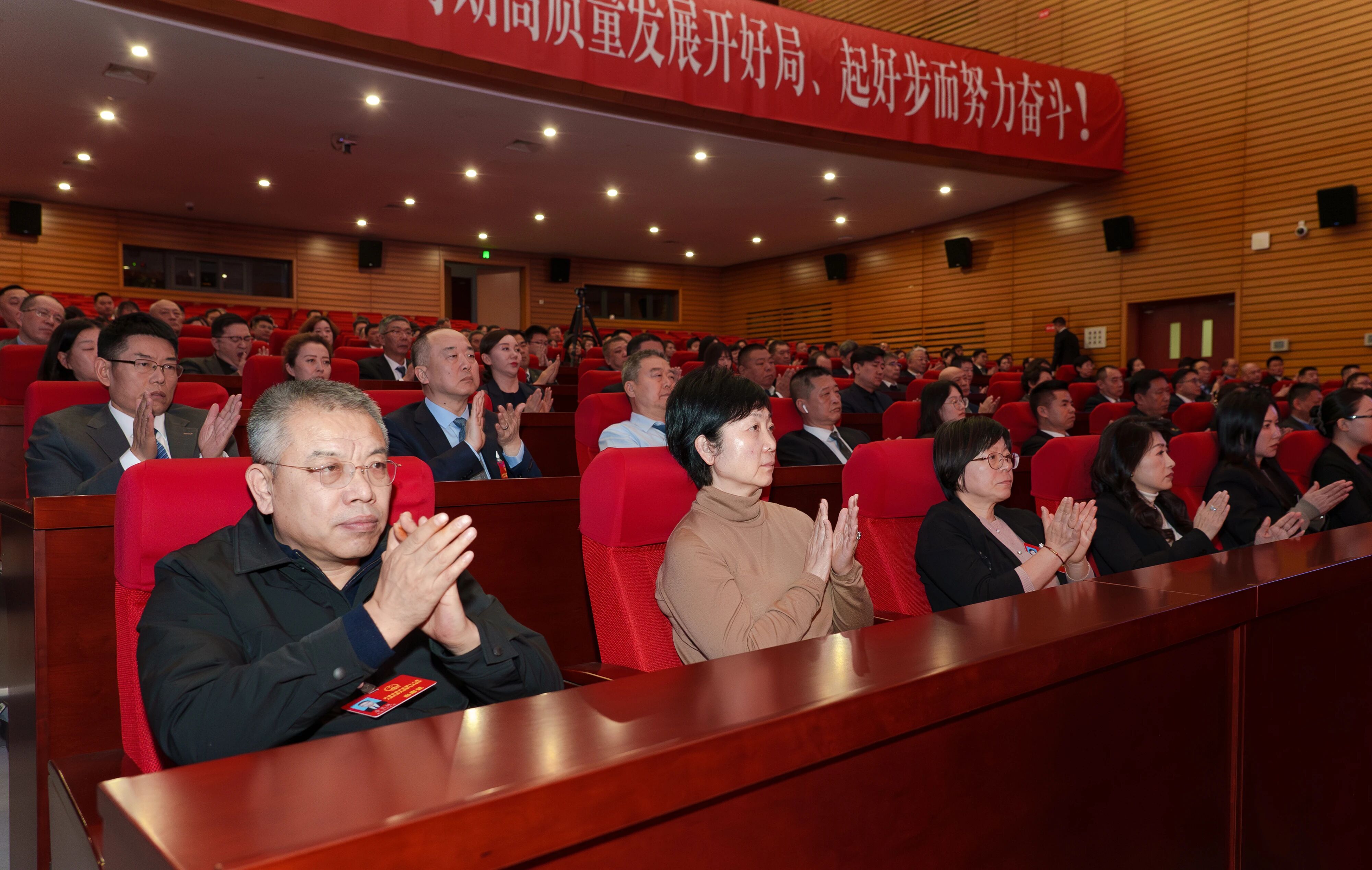 大会执行主席朱玉兵、王冰、孙长顺、李斌、李建国、纪立新、苑庆彬、张志华、丁志安、陈欣、张晓蓓、陈俊伟、岳雯茜、郑忠祥在主席台前排就座。聂伟迅和大会主席团其他成员在主席台就座。