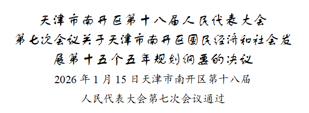天津市南开区第十八届人民代表大会第七次会议,审查了区人民政府提出的《天津市南开区国民经济和社会发展第十五个五年规划纲要草案》,会议同意区人民代表大会财政经济委员会的审查结果报告,决定批准这个规划纲要。