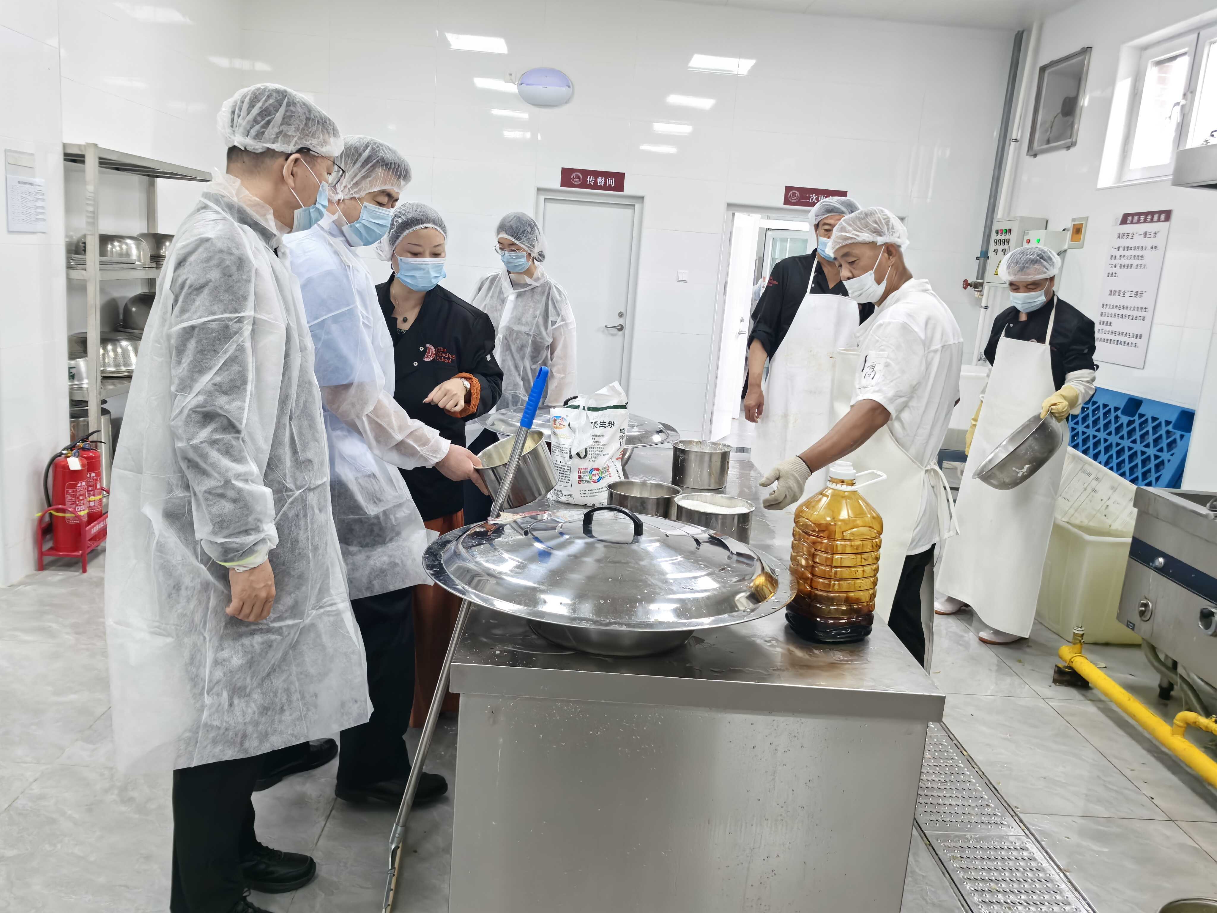 在配餐公司,视察组一行深入食品加工各环节。从原材料存储区域,到食品加工操作间,再到成品分装车间,详细查看了食材的采购来源、存储条件、加工流程以及卫生消毒等情况。执法人员对生产设备的运行状态、工作人员的操作规范等进行了细致检查。配餐公司负责人也详细介绍了公司在食品安全管理方面的制度与措施,如人员健康管理、食材溯源体系等。