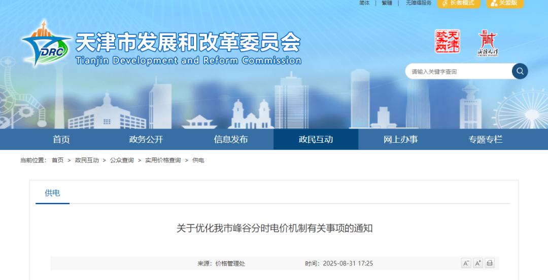 近日,天津市发改委网站发布《关于优化我市峰谷分时电价机制有关事项的通知》,调整分时电价时段设置,优化调整浮动比例,明确了执行范围和方式,提出鼓励居民电动汽车充电桩自愿选择执行峰谷分时价格政策。本通知自2025年10月1日起执行。