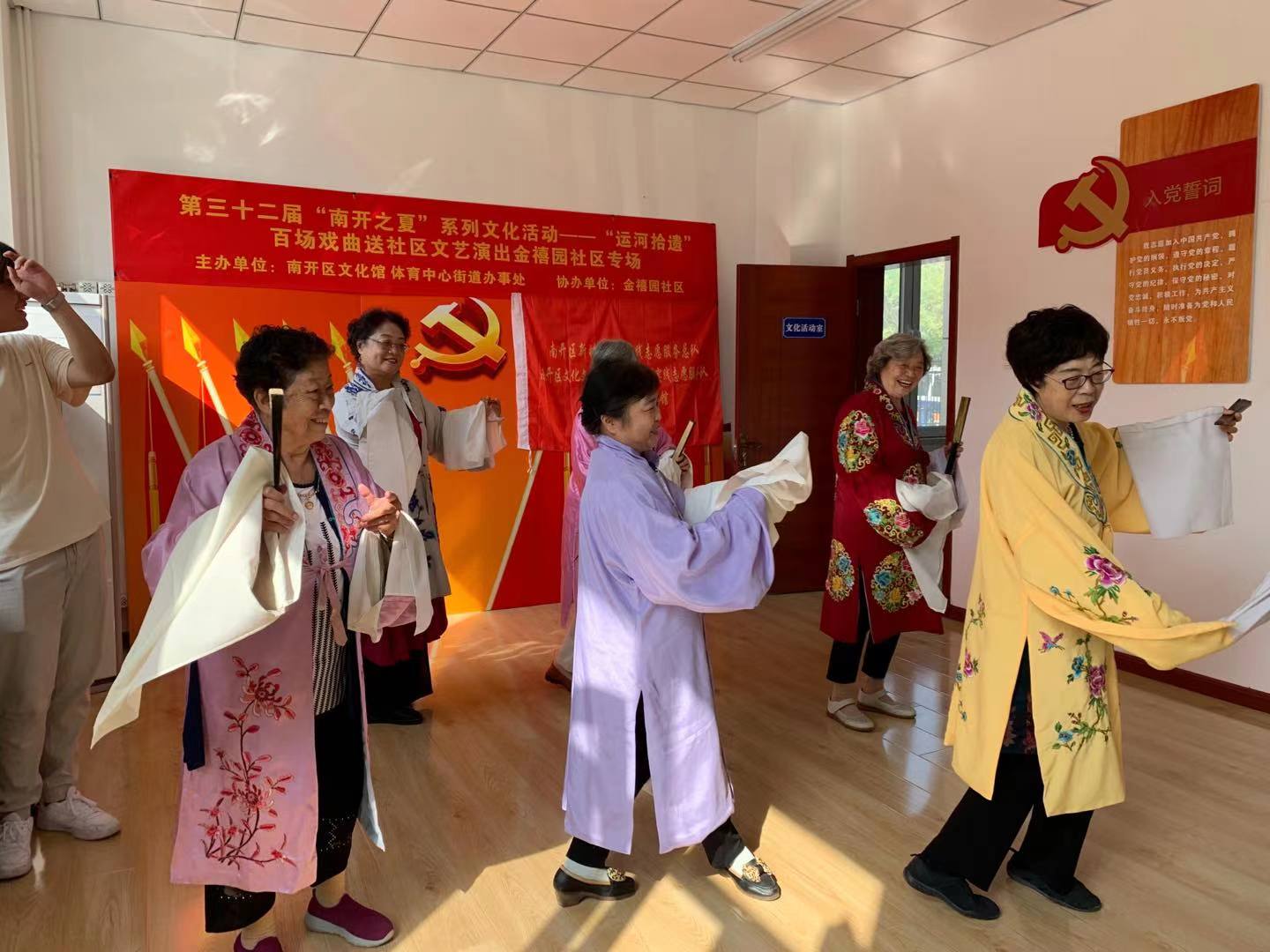 在近2个月的时间里,南开区文化馆工作人员与戏曲演员们走进体育中心街道各社区将戏曲文化送到群众身边,真正打通文化与群众的最后一公里距离。弘扬优秀传统文化,坚定文化自信,将传统戏曲文化艺术送进百姓身边。为人民群众汲取优秀文化创造便利条件,丰富群众精神文化生活,有效提高基层公共文化服务水平,让百姓共享文化实惠。