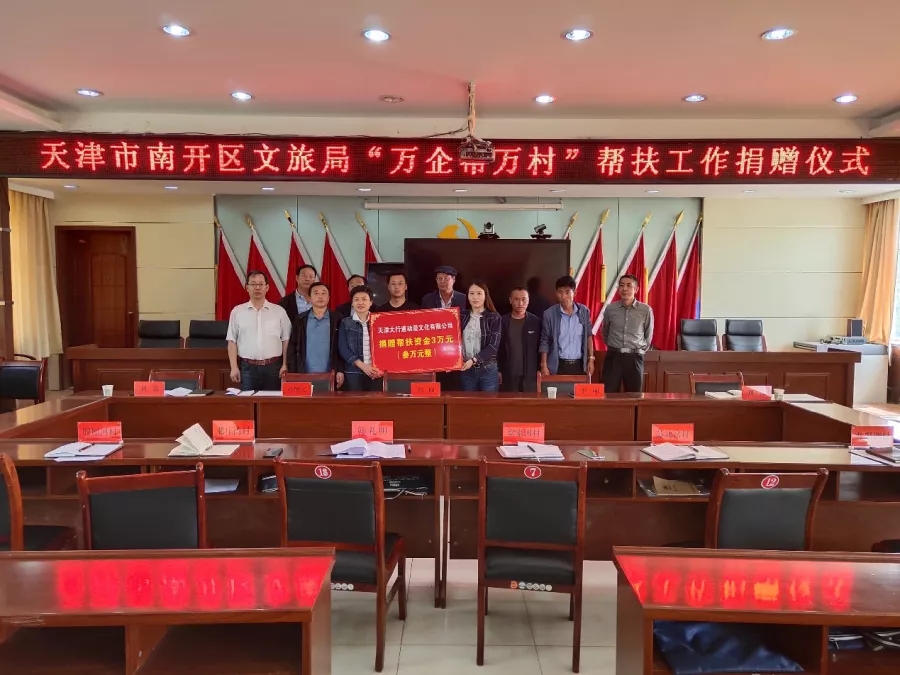 6月2日,南开区文化和旅游局刘丽副局长与天津大行道文化产业有限公司总经理李响,历经2个小时山路,奔赴环县天池乡,为对口帮扶的梁家河等6个贫困村送去捐赠帮扶资金3万元。捐赠仪式上,双方签订帮扶协议。环县天池乡刘震乡长对天津市南开区的文化企业,热心东西部帮扶事业,无私为甘肃环县贫困村奉献爱心,致以深情的谢意,对南开区文化和旅游局开展帮扶助困活动,助力脱贫攻坚工作表示衷心的感谢。