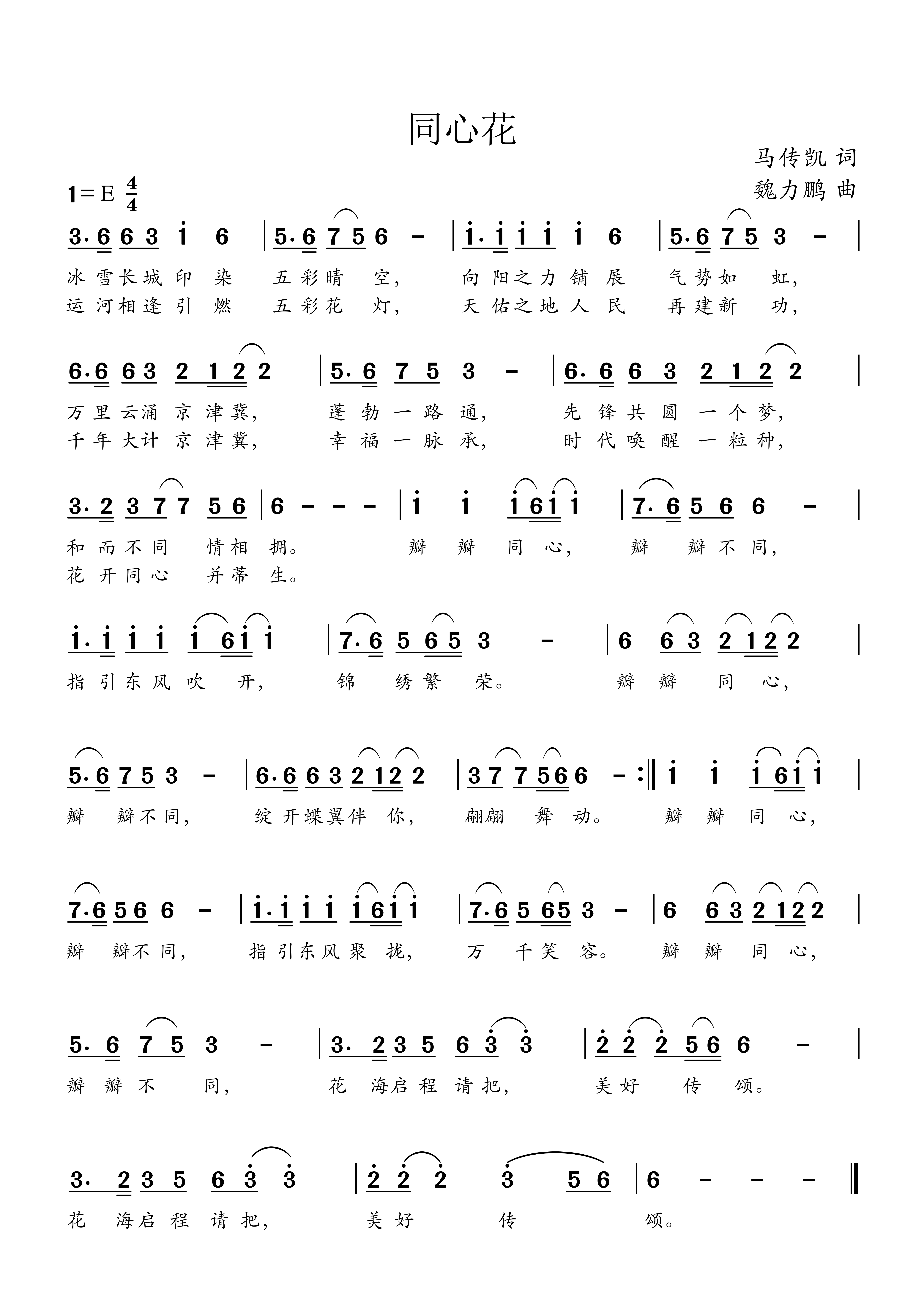歌曲《同心花》由南开区文化馆音乐干部马传凯作词,魏力鹏作曲,冯坤演唱,是为南开区2022年“冰雪中国年 一起向未来” 京津冀迎冬奥网络春节联欢会定制的歌曲。该歌曲艺术性地诠释出“京津冀如同一朵花上的花瓣,瓣瓣不同,却瓣瓣同心”的京津冀协同发展新格局。请您欣赏!