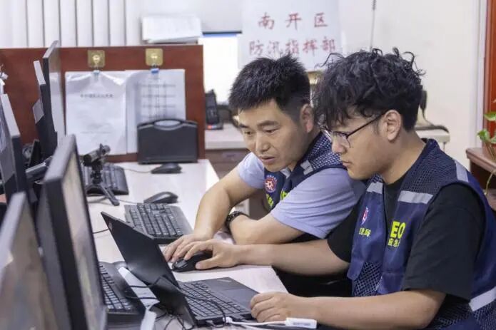 南开区压实责任体系。更新12个街道防汛行政责任人和1处一级、7处二级河道抢险责任段明细及抢险人员。完善预案体系,修订完善5处易积水地区“一处一预案”,修订《南开区城市内涝群众转移安置及保障方案》,组织开展防汛装备操作培训和防汛应急预案演练,提升应急响应力。全面查治隐患。汛前,共出动95个检查组213人次,检查点位319个,发现并整改隐患37个。区住建委实施排水排涝能力提升工程。区城管委开展排水管道清淤养护。建强应急处突队伍。组建由排水、消防等专业力量构成的7支区级防汛抢险队,储备应急物资、防汛物资总数14.93万件。为区城管委配备排水抢险车14辆,为街道配备组合式防洪板、救生拉杆、柴油机泵等防汛物资。织密汛情监测网。在全区50处地势低洼、易积水等重点点位安装水位监测装置。