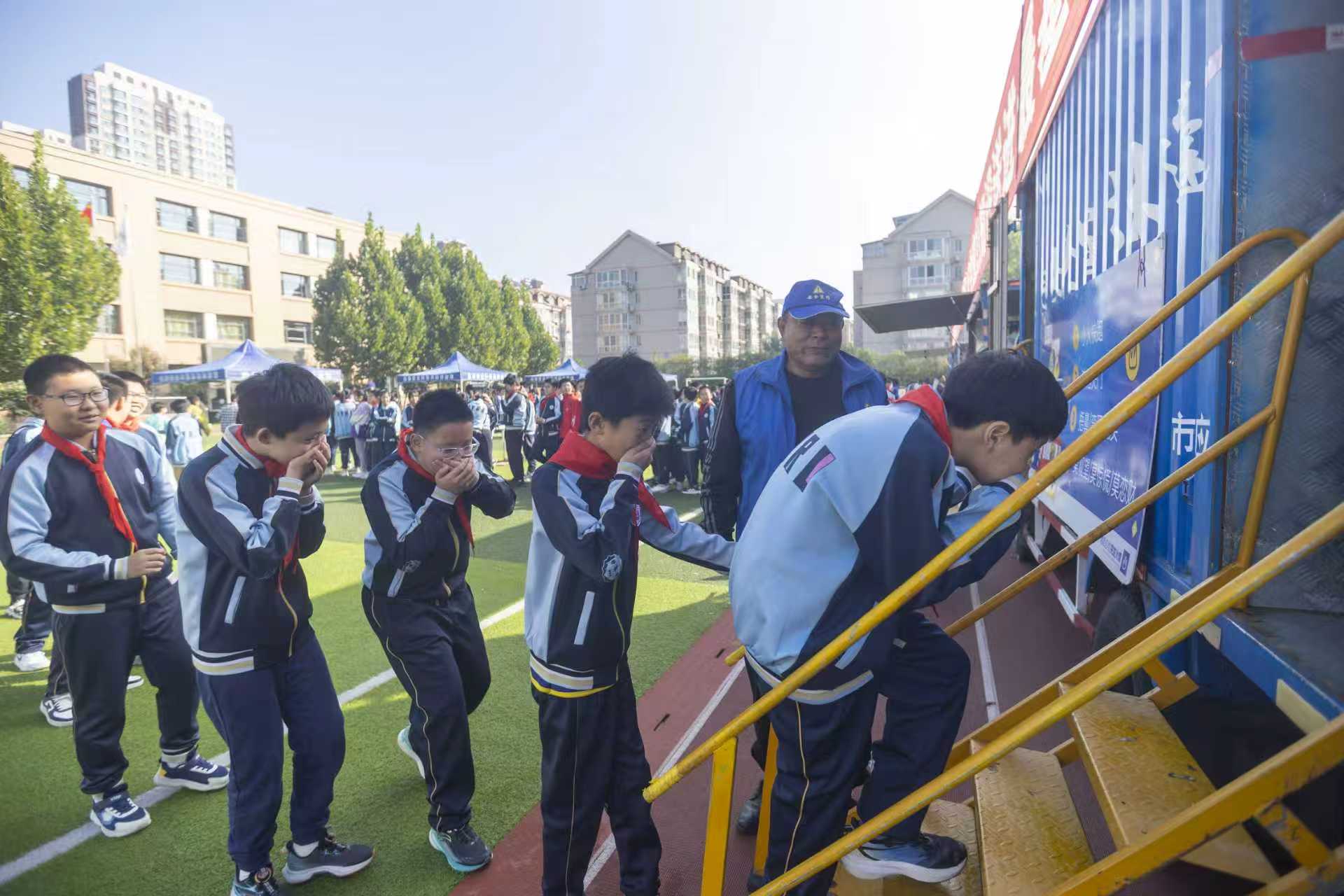 在实景体验环节,师生们在工作人员的引导下,有序进入各主题体验车厢,在高度仿真的环境中进行“沉浸式”学习。充满烟雾的逃生舱内,参与者学习在能见度极低的情况下保持镇定,掌握低姿前行、湿巾捂口鼻等正确的火场逃生技巧;电力安全体验车内,通过模拟触电、漏电、电弧等危险场景,学习用电的安全知识;地震体验车模拟了地震发生时地面剧烈晃动、室内物品倾倒、房屋倒塌等场景,让师生们切身感受地震危害,并学习“伏地、遮挡、手抓牢”科学避震七字诀;自然灾害体验车则让参与者体验台风、暴雨、火灾等灾害场景,增强应急防范意识。这种寓教于乐的方式,极大提升了学习的趣味性和实效性,使安全知识真正入脑入心。