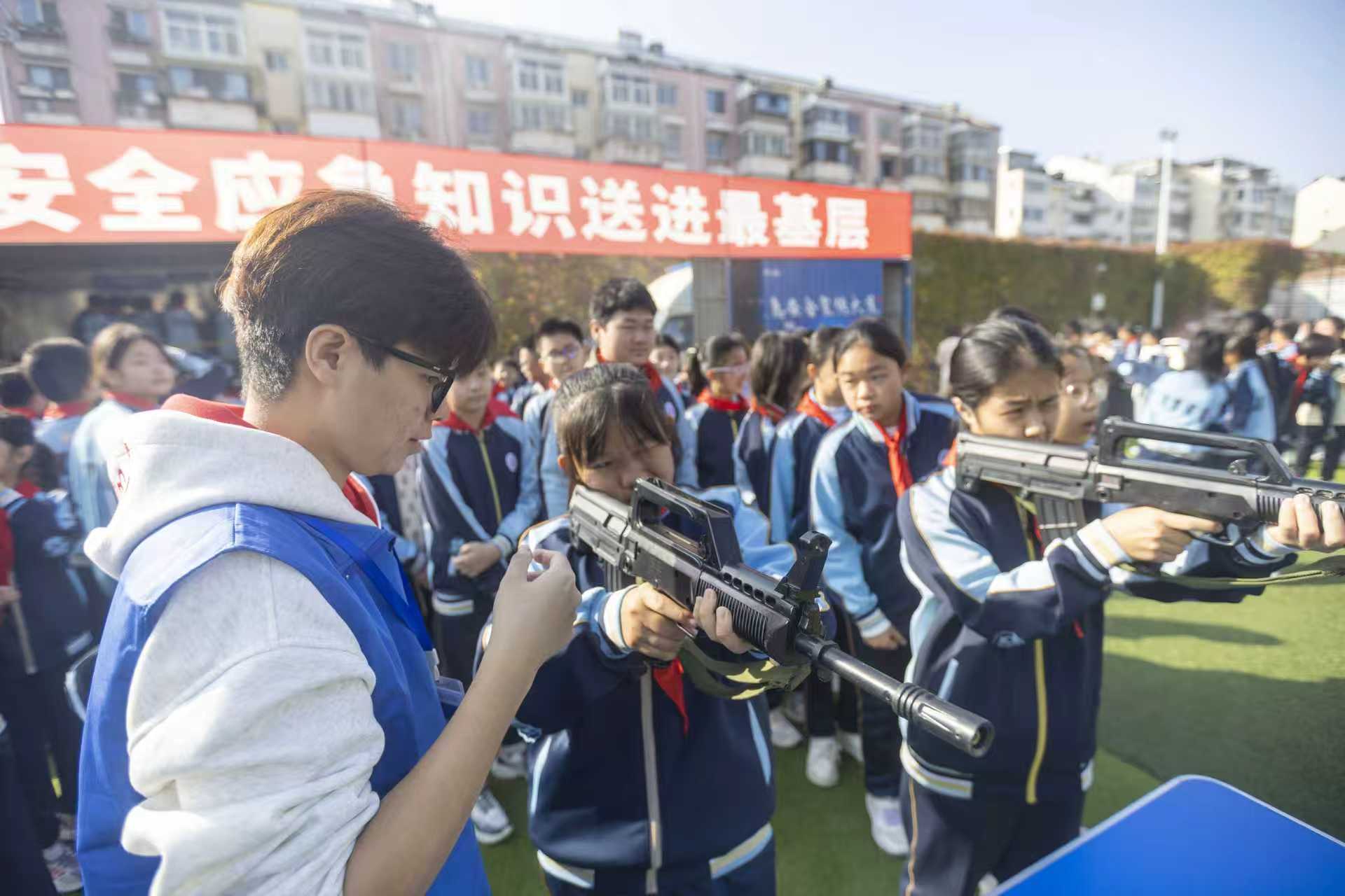 为进一步增强活动的互动性和参与感,现场还专门设置了电子模拟射击系统体验区,吸引了众多学生踊跃尝试。此举不仅有助于加深青少年对国防安全的理解,更在模拟练习中有效锤炼了他们的心理素质,培养了沉着冷静、果断勇敢的意志品质。