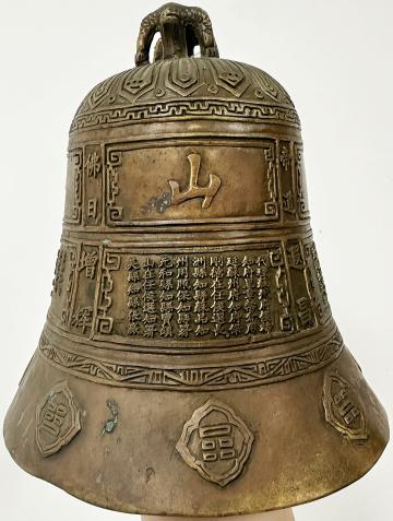 这口小铜钟不仅是极具韵味的装饰珍品,更暗藏着深厚的文化与工艺底蕴。“钟”作为曾承载佛教核心使命的法器,它晨暮各鸣108下,既暗合“祛除108种烦恼”的禅意哲思,又巧契一年12月、24节气、72候的自然节律,昔日报时、集结僧众、祈福禳灾的神圣使命。如今化作装饰中可感的文化肌理,从工艺层面看,它凝聚清代声学、力学与铸造技术的精髓,精美的器型与纹饰自带古朴庄重的美感,既是装点空间的艺术佳品,更为研究清代手工业发展与佛教法器演变提供了珍贵的实物佐证,让装饰价值与历史底蕴完美交融。